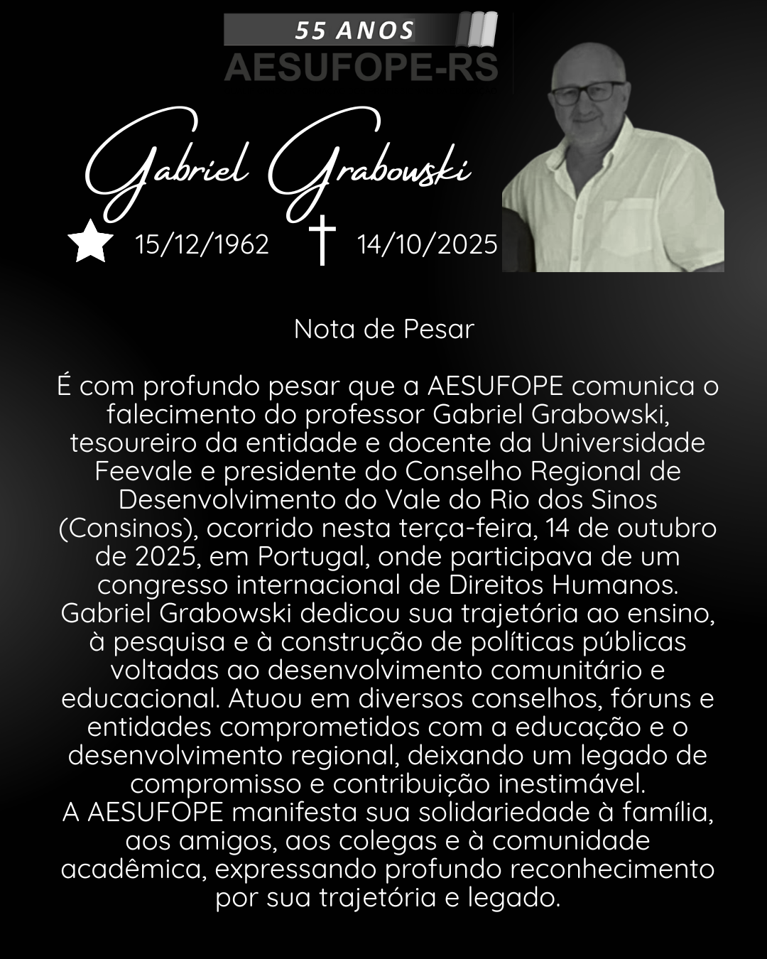 AESUFOPE lamenta o falecimento do professor Gabriel Grabowski e reconhece seu legado na educação e no desenvolvimento regional.